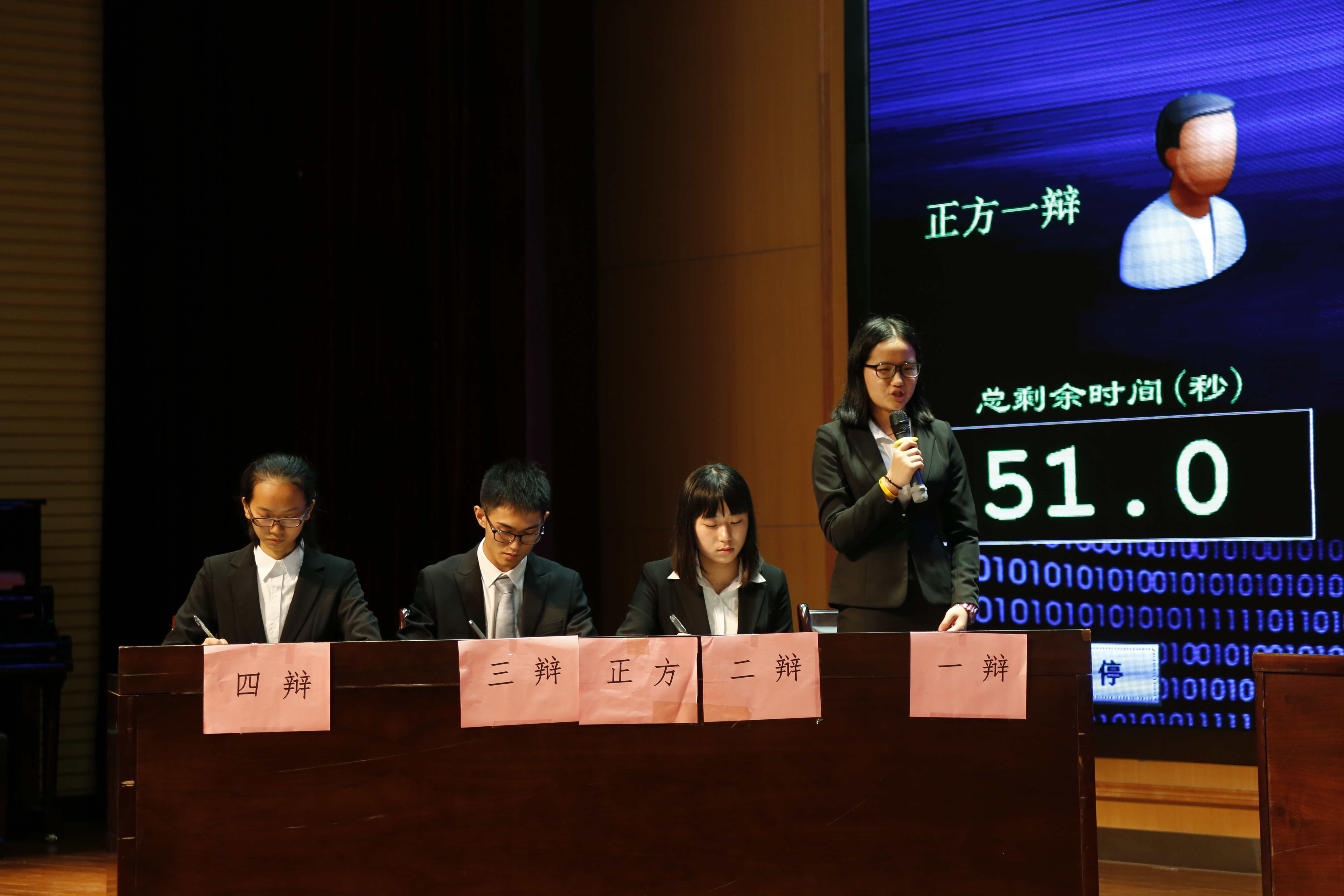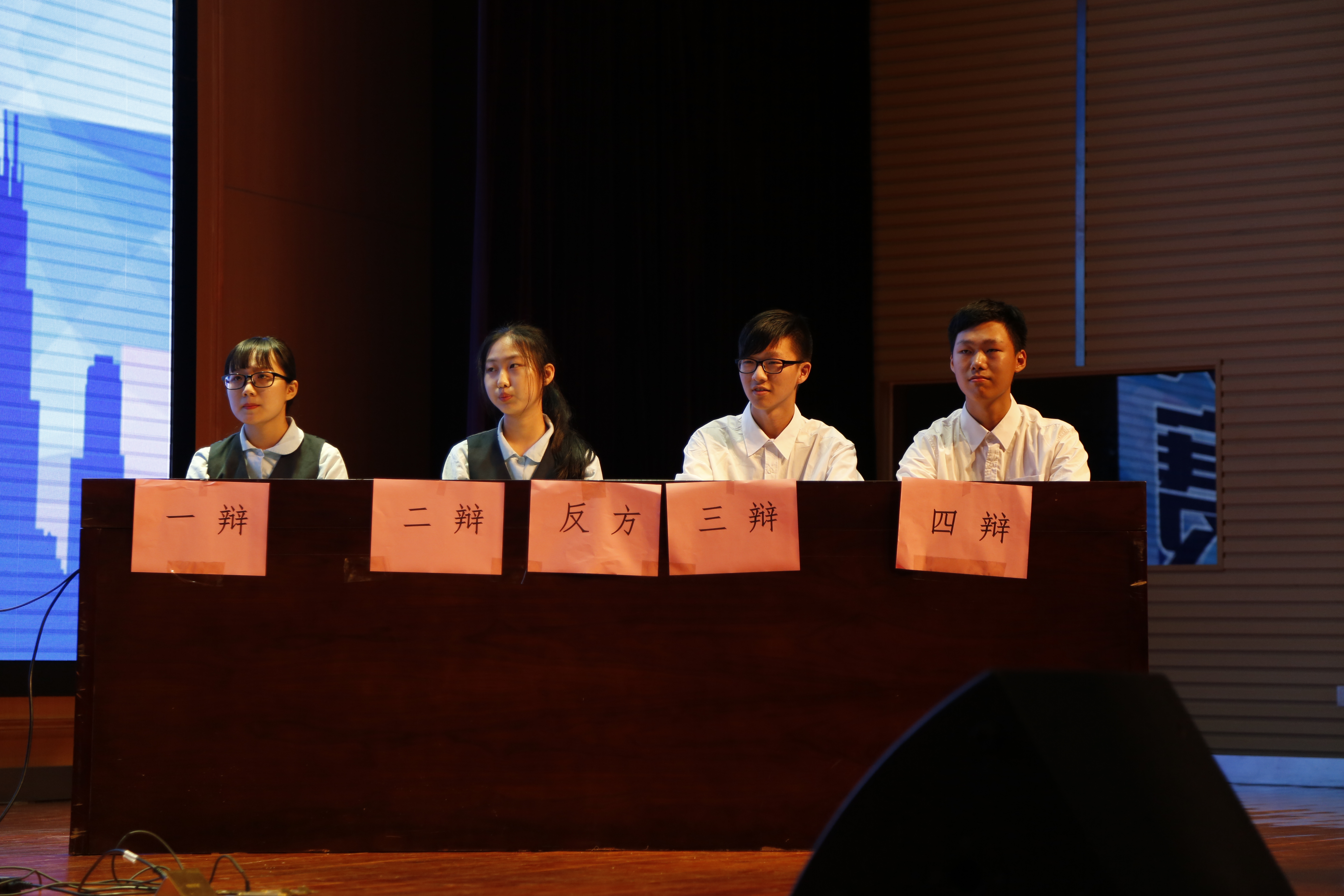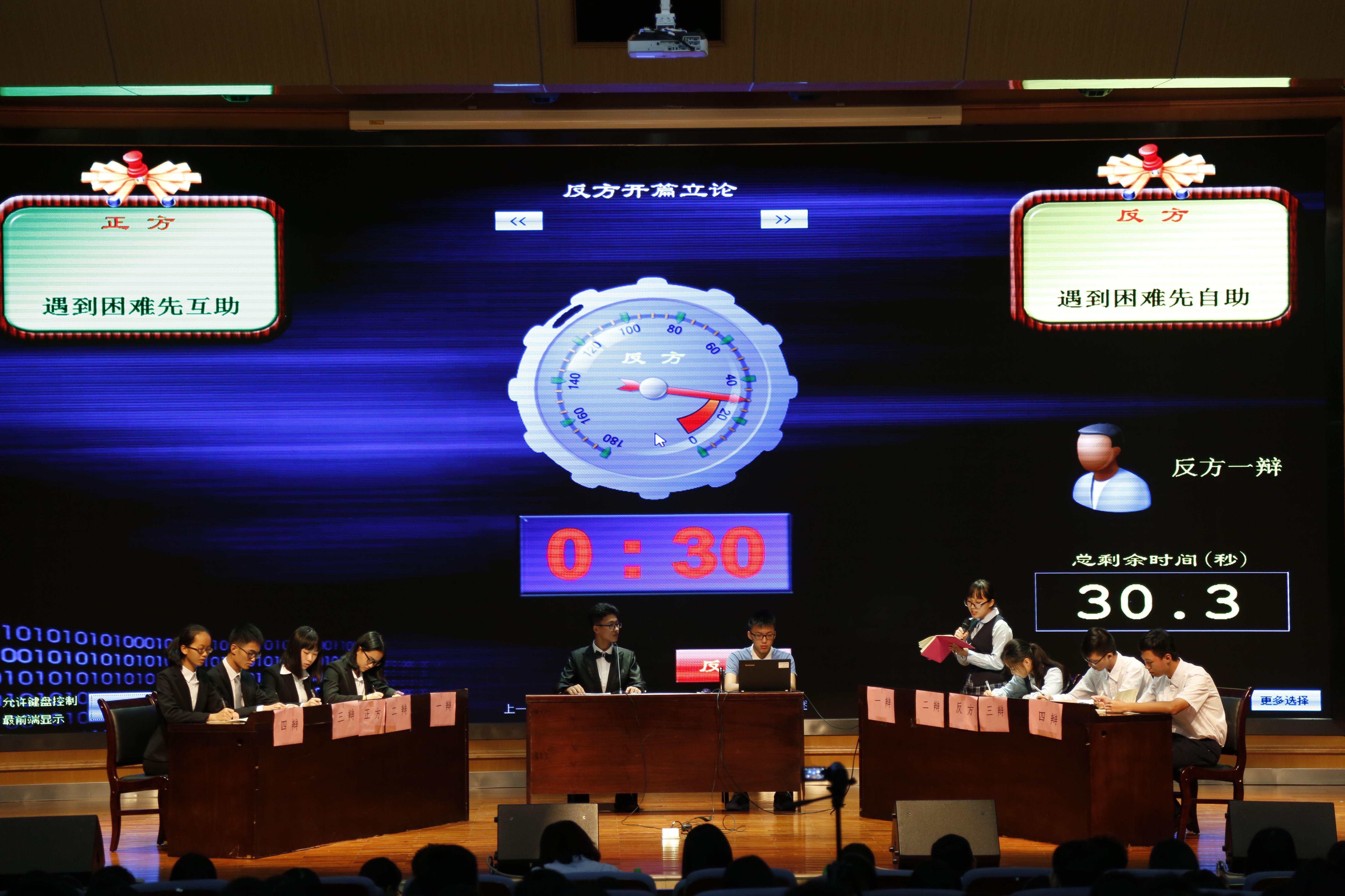 二十几支队伍经过三轮选拔赛,最后来自高一的两支辩论队进入总决赛。总决赛上,正反方辩论队就“遇到困难要互助还是自助为先”展开激烈论辩。
