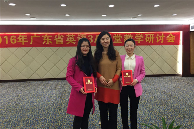 3月23日,2016广东省英语3A课堂教学研讨会在广州召开,在“2015年度3A课堂教学范式资源征集及评优”颁奖仪式上,华中师大龙岗附中英语科组荣获“资源征集组织奖”,英语老师张丽莉获得“应用推广及听说能力展示奖”。