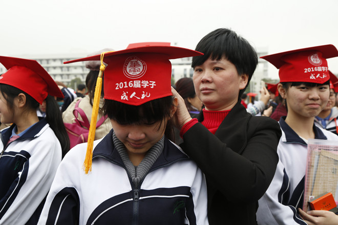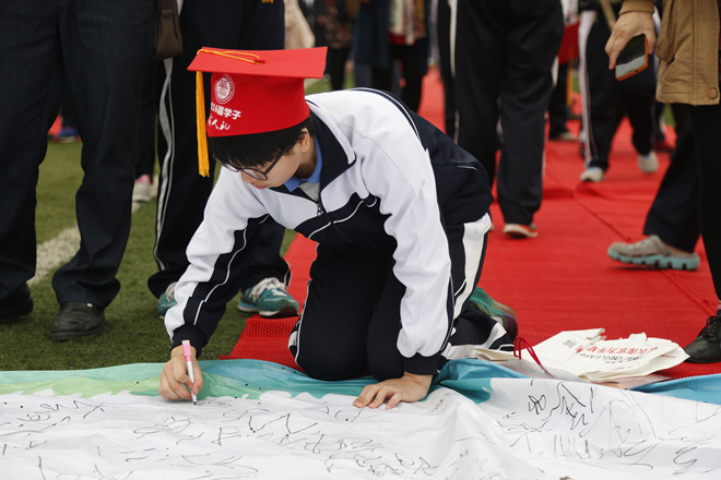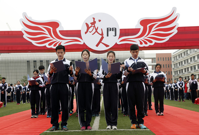 成人仪式后,2016届学子进行了高考冲刺誓师宣誓。在他们的誓词中,高考是人生的一个重要考验,他们决定接受这个考验,历练自己,让年轻的自己更加勇敢和坚强。