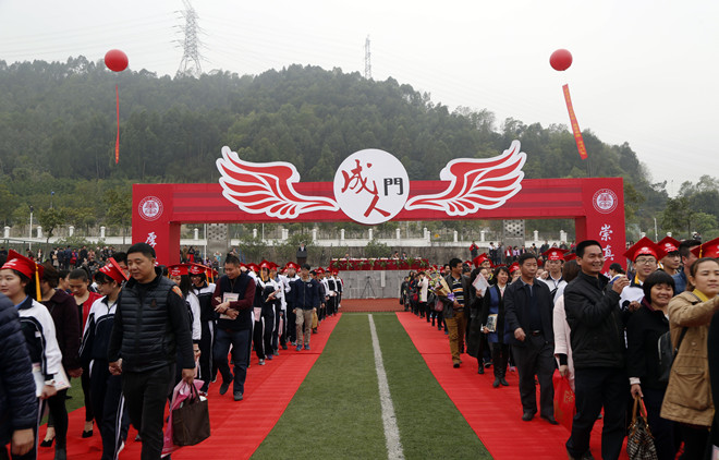 “成人礼”是中华民族的优秀传统,古人用“冠”“笄”之礼来宣告少男少女成年。在21世纪的今天,十八岁的青少年们又用什么样的方式来庆贺成年呢?看,华中师大龙岗附中2016届的学子们创意无限,在父母与师长的见证下,用精心设计的现代版成人礼向世界宣告:“我们成年了!”