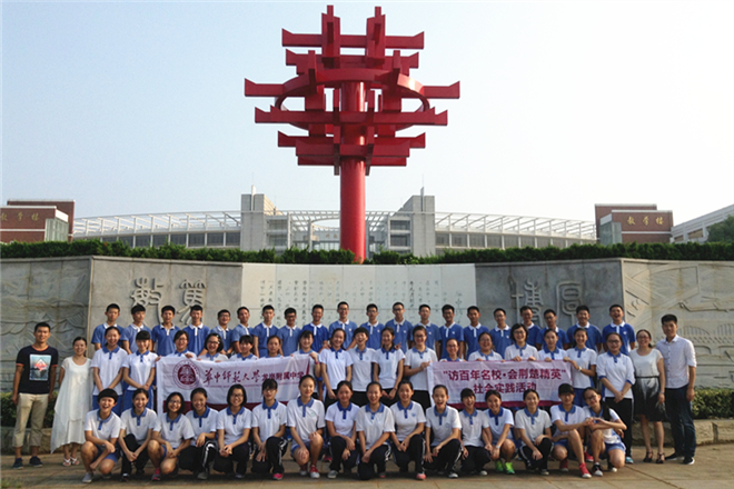 走进华中师范大学的校园,53名学子被眼前的一幕吸引了:时值暑假,在教学楼前竟然有不少学生在背书。在导游的指引下,学生排成一列纵队,参观七号教学楼一楼。偌大的教学楼静悄悄地,每间自习室都满满当当地坐着大学生,自习室里只有轻轻的翻书声。走出自习室,一路欢声笑语的学生们陷入了沉默,不少学生若有所思,一名男同学告诉导游:“我以前听说大学生每天只需要上几节课,其它的时间就可以打游戏了,没想到大学也要自习”。晚上的日记分享中,一名同学特别分享了参观自习室的感受:“原来,大学不是玩的好机会,而是自主学习的好机会,我终于明白老师的一句话‘离梦想越近的人,越懂得为梦想而努力’!”