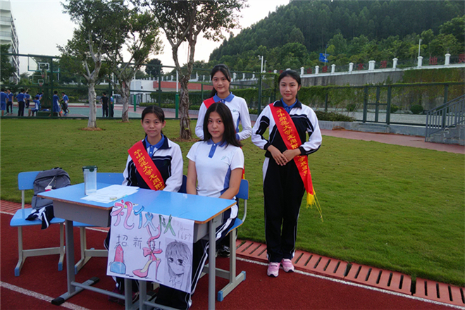 9月23日下午5时,华附“百团大战”社团联合招新活动在大操场打响“第一枪”。绿茵茵的足球场周围整齐地摆放着56个社团摊位,高一、高二年级倾巢出动,同学们兴奋地奔向自己心仪的社团。