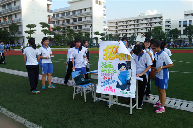 “我早就想好要加入英语俱乐部了,平时也和外教Venus交流了很多,今天没有犹豫,我就直奔这里报名了。”高二(1)班陈雨佳同学顺利成为英语俱乐部的第一名成员,一脸满足。“参观了一圈,我发现自己最喜欢的是插画研究社”,高一(6)班周同学说,“小时候我就对绘画感兴趣,后来因为学习我一直没能学画画,没想到高中居然能继续我的兴趣了。”“我们对羽毛球运动非常感兴趣,很感谢学校给我们创建羽毛球社的机会,我们想让更多喜欢这个运动的同学们加入我们,一起Happy!”羽毛球社社长邓景昱同学说。