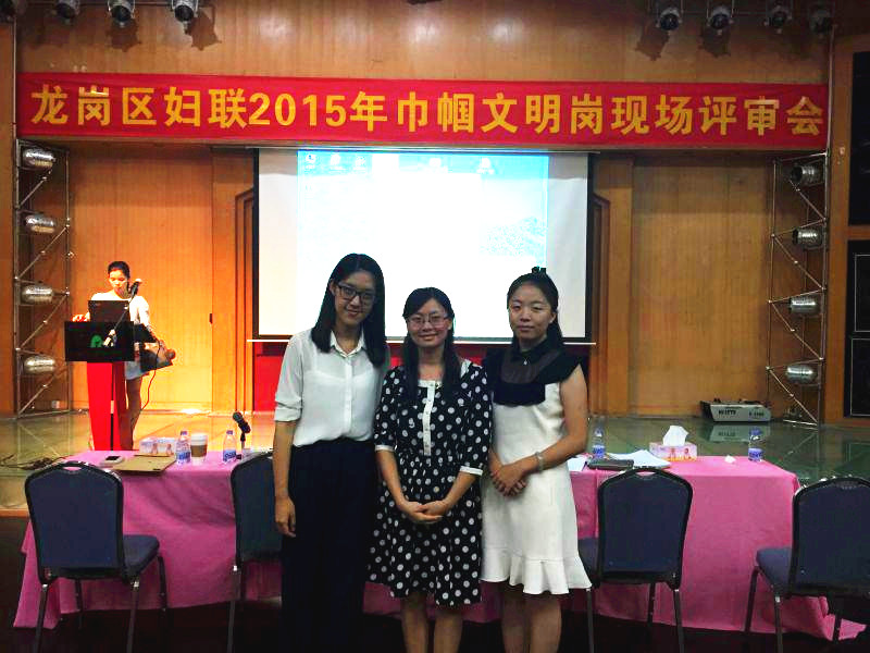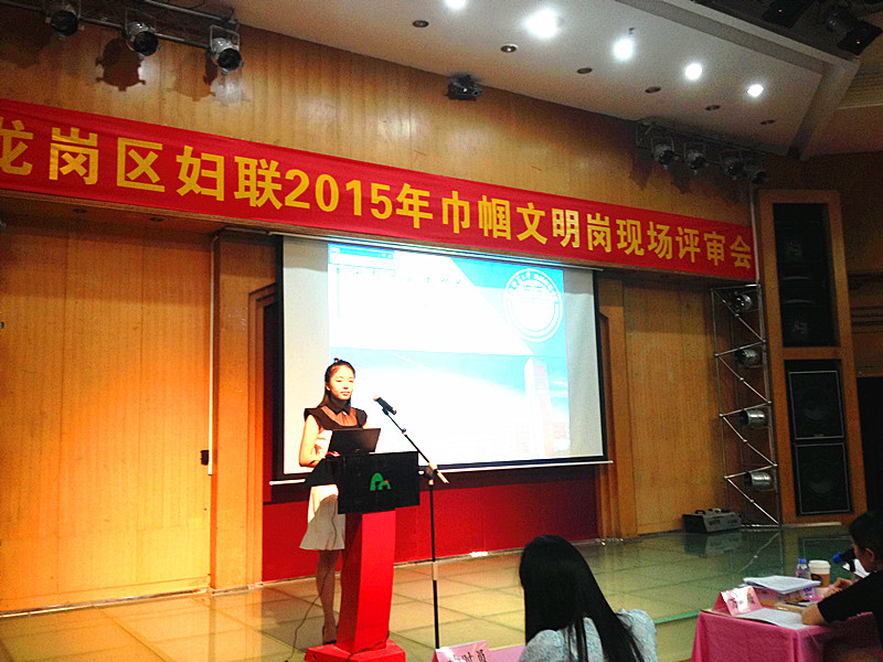 近日,龙岗区妇联2015年巾帼文明岗现场评估会在龙岗区妇幼保健院三楼报告厅举行,华中师大龙岗附中语文组在汇报会上进行了题为《圆教育和美梦想 展巾帼飒爽风采》的汇报展示,由侯俊青老师主讲,汇报在校领导的大力支持和语文组全体教师的努力下取得圆满成功,受到评委和其他参评单位的一致好评。