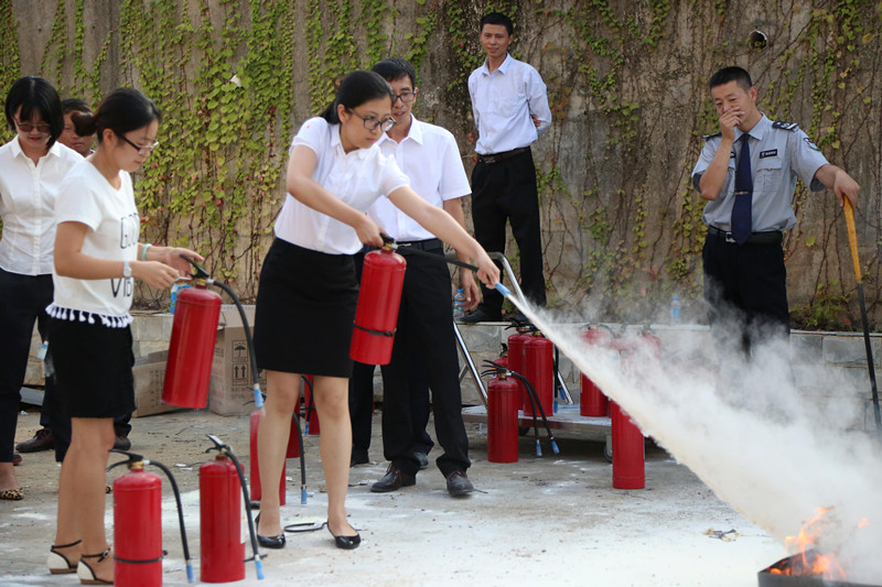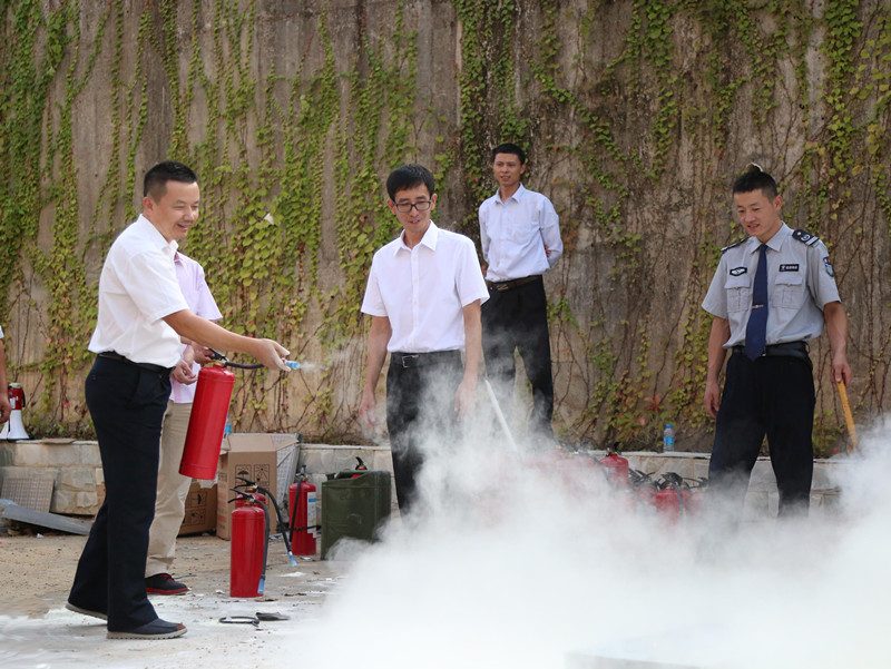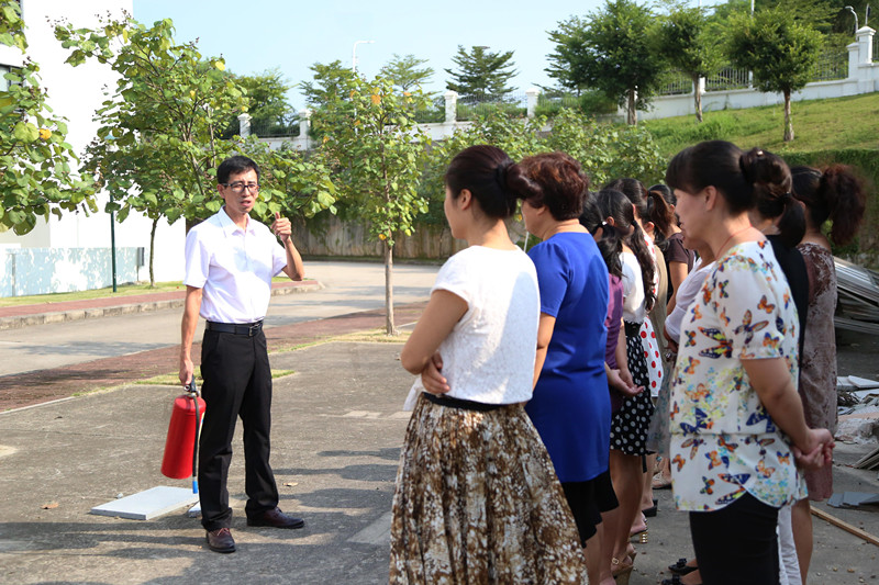 9月9日下午,我校在宿舍楼A4栋背后空地举行“2015-2016学年第一学期消防安全培训活动”,安全办为我校行政人员、高一、高二年级教师、保安员、生活老师、食堂工作人员和学生代表进行了消防灭火器的培训活动。