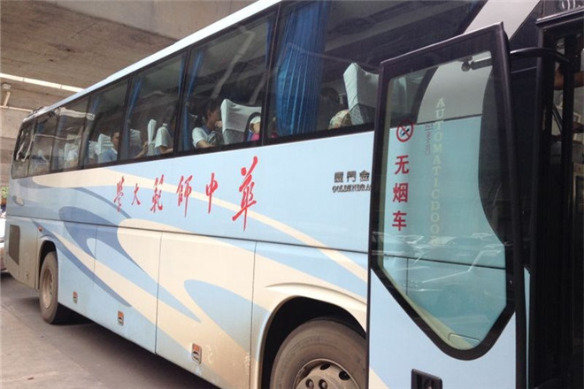 图2 华附学子登上华中师范大学校车