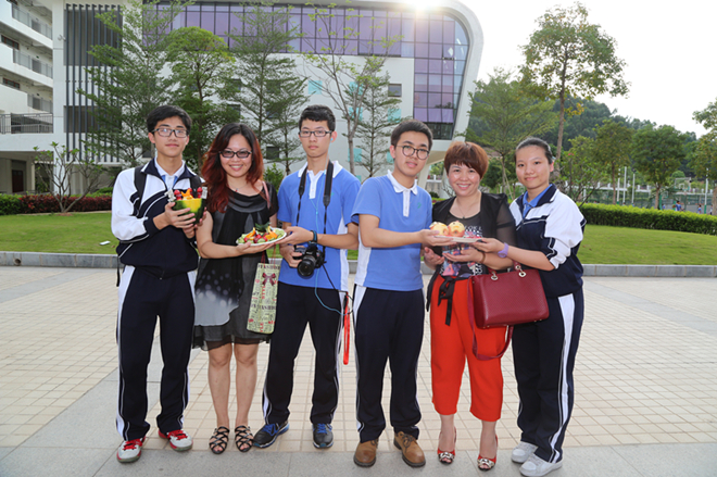 一位母亲看着自己儿子班级“爱妈妈”的拼盘,感动地说:“我的孩子以前很少做家务,为了这次创意拼盘大赛,他从上个周末就开始“偷师学艺”,拿零花钱买了好多水果孝敬我们,还让我们教他切水果。他今天的作品让我感觉非常骄傲。”活动现场,不少学生、家长和老师们端着水果拼盘合影,场面格外温馨。见此情景,德育处副主任任翔不禁感慨:“中国人大都比较含蓄,很少将’爱’字说出口。很开心这次的活动帮大家将爱用创意表达了出来。”