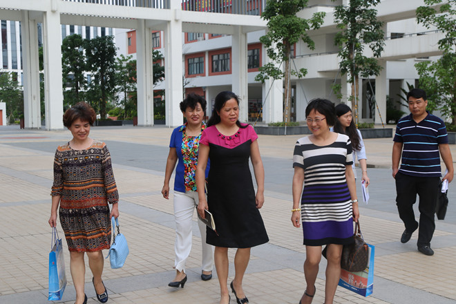 五月的花海灿烂,初夏的绿阴清凉。2015年5月7日下午,美丽的华中师大龙岗附中迎来“深圳市绿色学校”评估组专家组。以深圳市福田区景秀小学舒锦萍校长为领队的评估组专家们高度评价华附的环境:美化、净化、绿化、亮化、雅化。