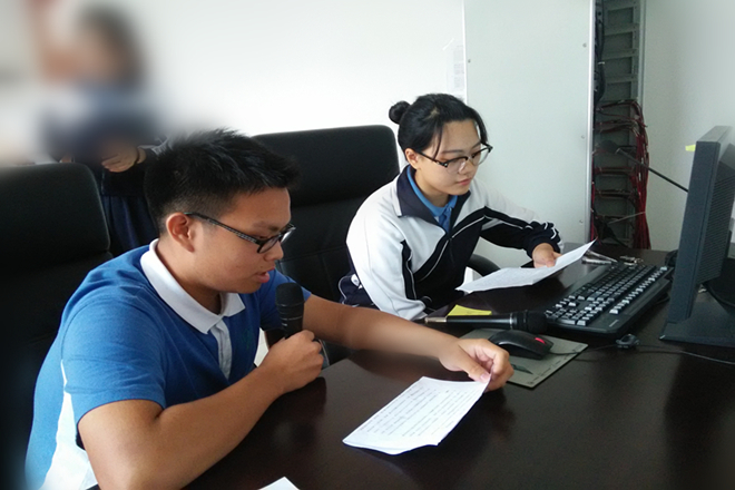 “本次分享会我们采用了全校播音和小班视频结合的方式,希望能在展现活动的同时,给同学们更多互动分享的机会。”策划人学生会主席陈楷说道。本次分享会分三个环节,第一个环节是播放《17名华附学子的旅行日记》,这段学生自己创作的视频真实地再现了社会实践活动的精彩瞬间,以日记体分享了点滴励志感悟,“集真实、幽默和感人于一身”视频主创之一蓝瑀浟同学说。17名华附学子励志版旅行日记的微电影在校园内迅速走红。第二个环节中,学生代表杨华平和吴佳盈,家长义工代表徐艳玉和带队领导刘道德分别分享了自己此行的感受。其中,全程参与活动的家长代表徐艳玉女士以“行在江城·爱在旅途”为题,真诚地分享了一位妈妈眼中的华中师大龙岗附中学子,深受学生欢迎,她说:“最让我骄傲的是我们的孩子,他们在活动中互助互爱,能够很好地适应环境,他们热情大方,友好和谐。我想,这也许是在深圳这所包容开放的城市以及华中师大龙岗附中这所重视学生能力培养的学校共同熏陶的结果。”