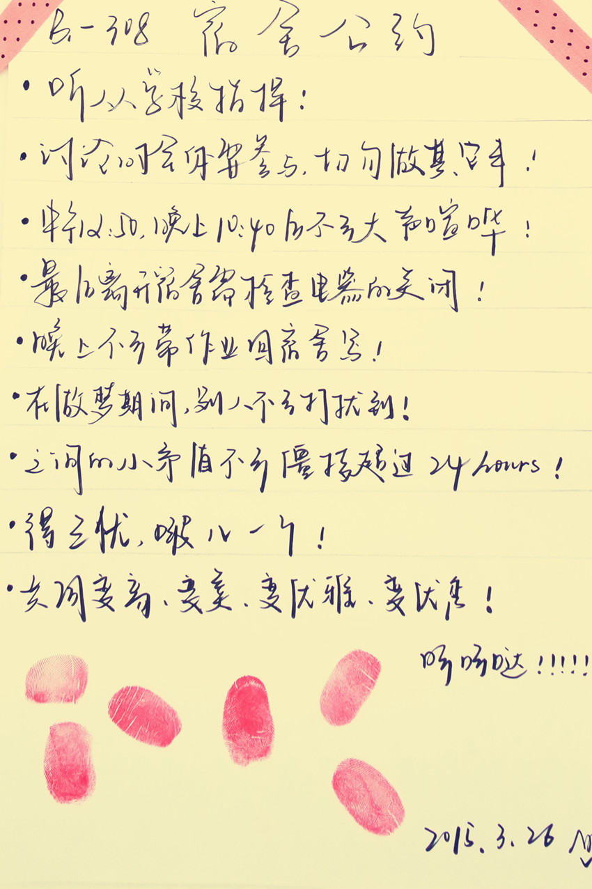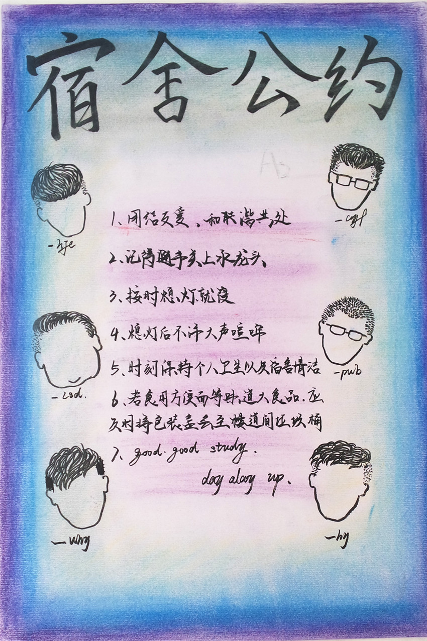 如果您近期光临华中师大龙岗附中的学生宿舍,您将惊奇地发现宿舍的名称不再是几栋几零几,而是“醉清风”“水帘洞”“国家6A级景区”“生物圈3号”“雅舍不哑”;你会看到宿舍门后不再是“学校宿舍管理规范”,而是个性化的“拖地歌”“小家公约”“君子协定”……