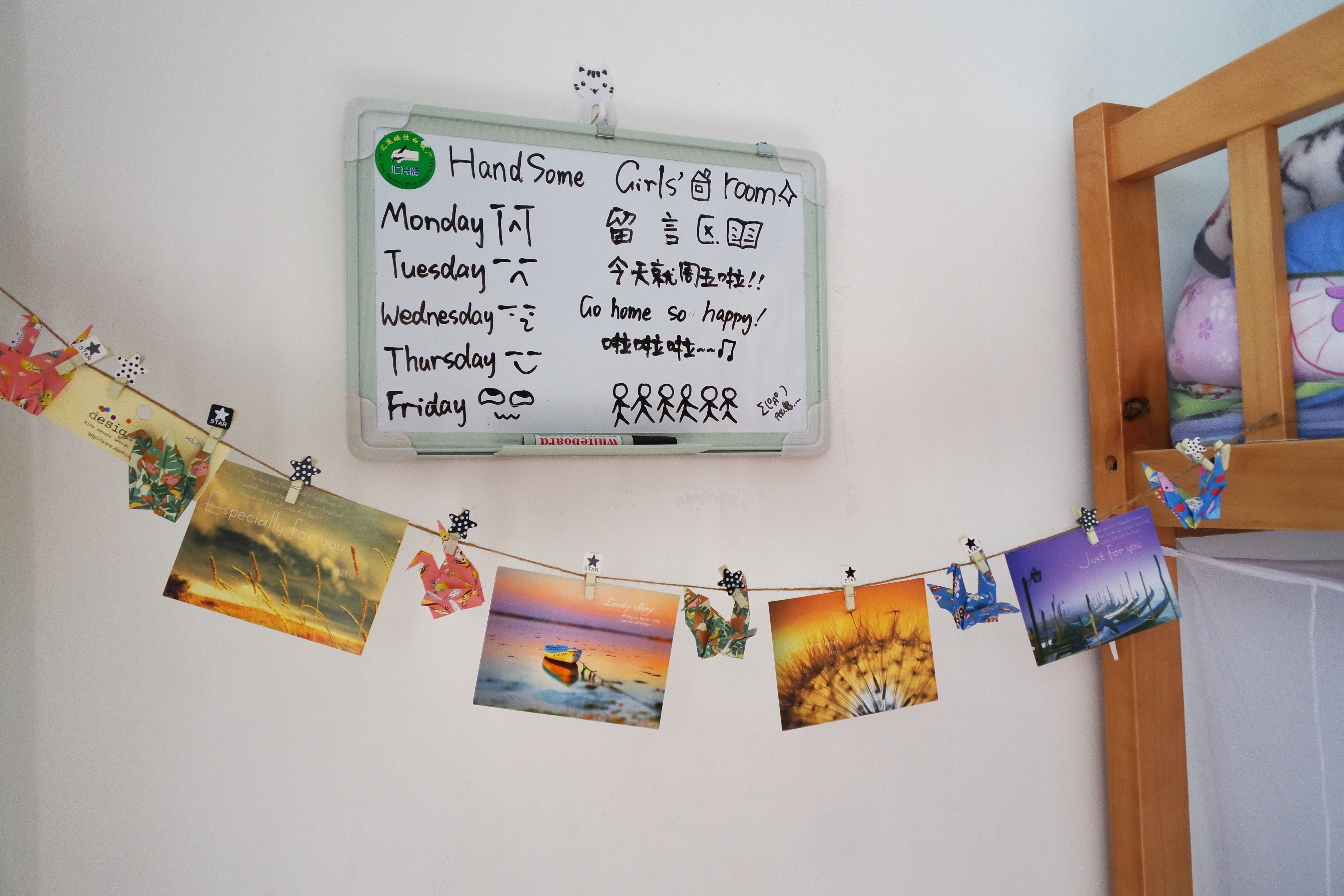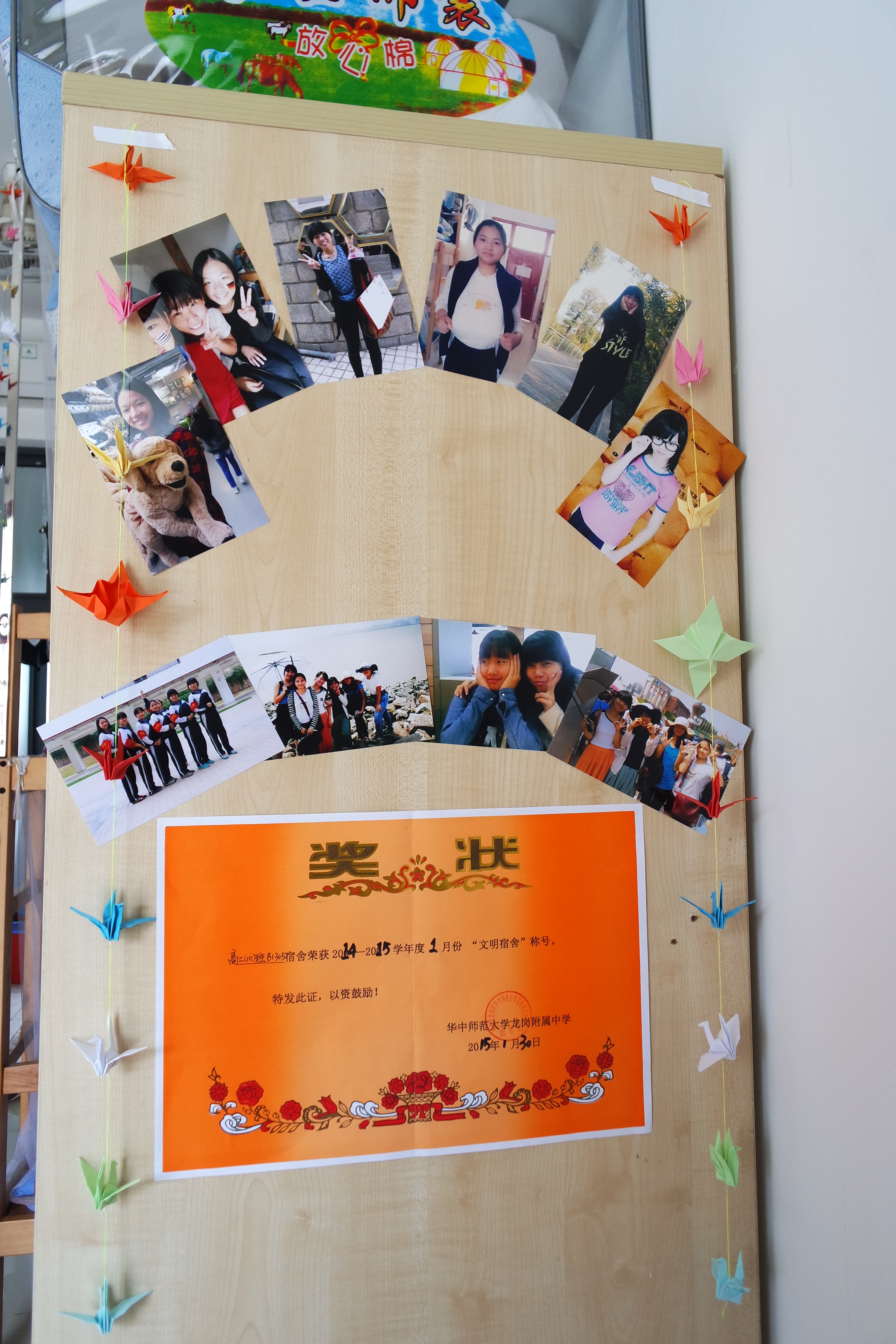3月20日至3月27日之间,华中师大龙岗附中举办了“创意小家”首届宿舍文化节,同学们通过设计宿舍名称、制定宿舍公约、装扮及绿化宿舍等活动,将普通高中六人间的宿舍变成了温馨的小家。走在同学们亲手设计的“创意小家”中,抬头是满眼青葱的绿萝,低头是可爱实用的卡通垫,衣柜门上贴着醒目的大学梦想,柜格中摆着生机勃勃的小盆景,通往阳台的路上有紫色的“一帘幽梦”……各式创意让人应接不暇。